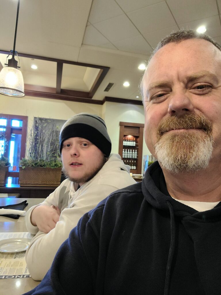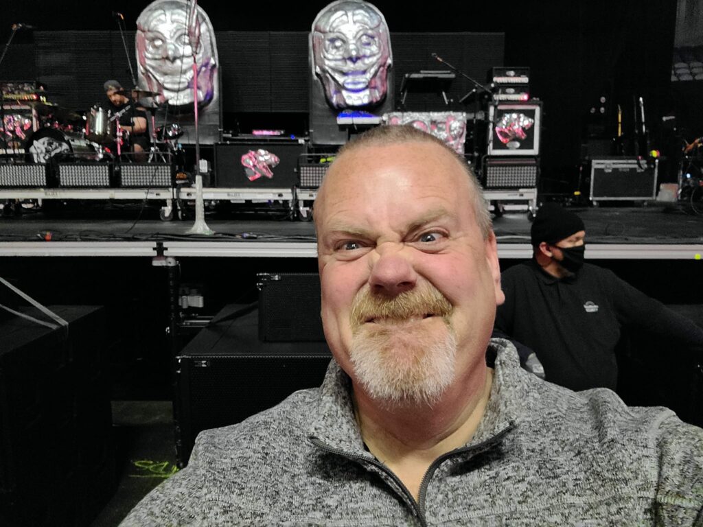 Brent Jackson lives a fun and happy life and enjoys the concerts that come to the Victory Theater and the Ford Center. In the picture on the left, Brent Jackson was stoked to have front row seats at the Korn concert when they came to Evansville’s Ford Center. The picture on the right is with childhood friend, fellow concert goer, and music guru extraordinaire Brad Perkins at the Victory Theater.