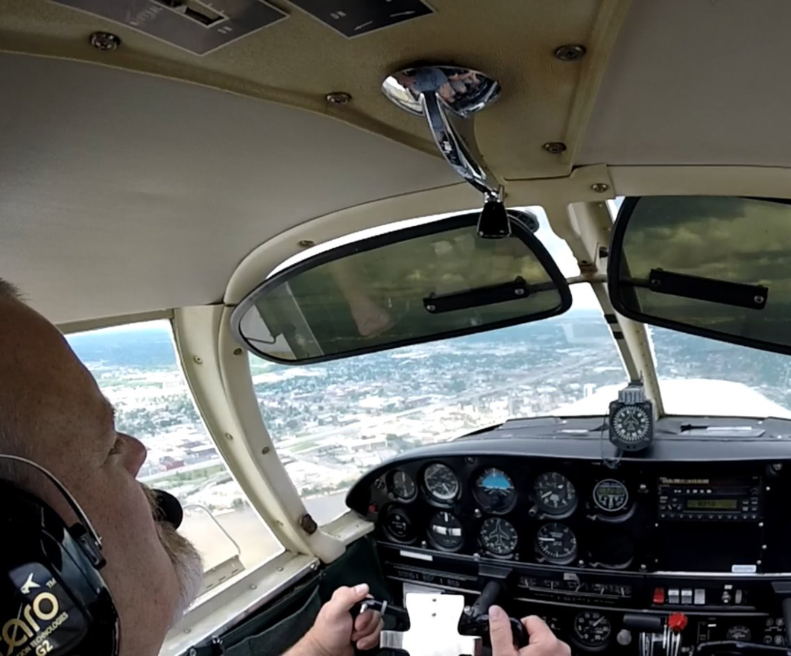 The picture on the right is Brent flying a plane in Evansville (alongside an actual licensed pilot).