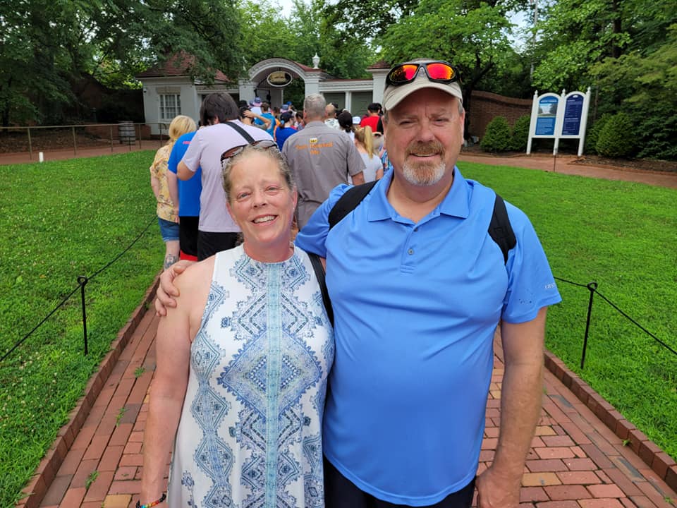 Brent Jackson loves America and American history. In the picture on the left is Brent and his wife, Erin at the entrance to President George Washington’s home in Mt. Vernon, Virginia. In the picture to the right taken in 2017, as Jackson tours the Evansville African American Museum.